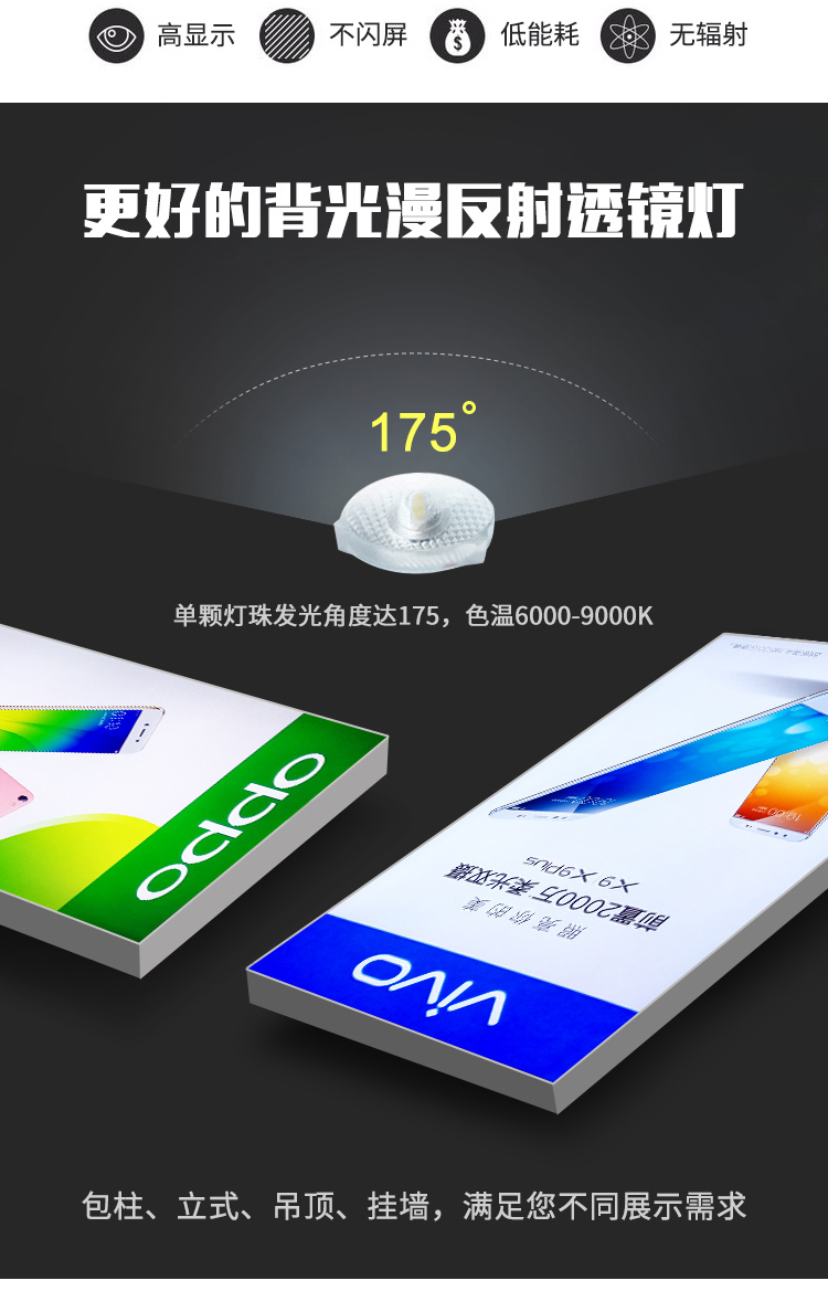 產品特點除了具備超薄節能燈箱的優點外,顯示效果別具一格,亮燈時展現的是……